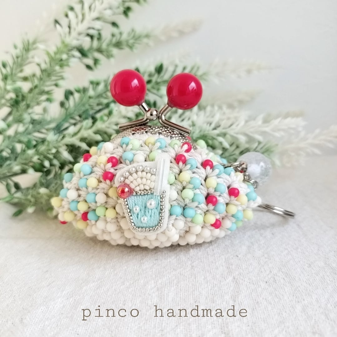 手刺繍の小さなクリームソーダを付けて