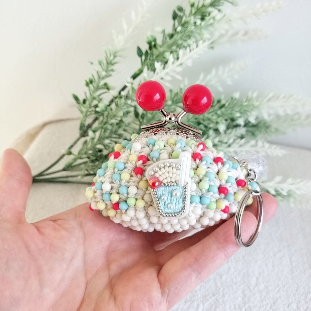 クリームソーダ★手染めビーズを編んだがま口