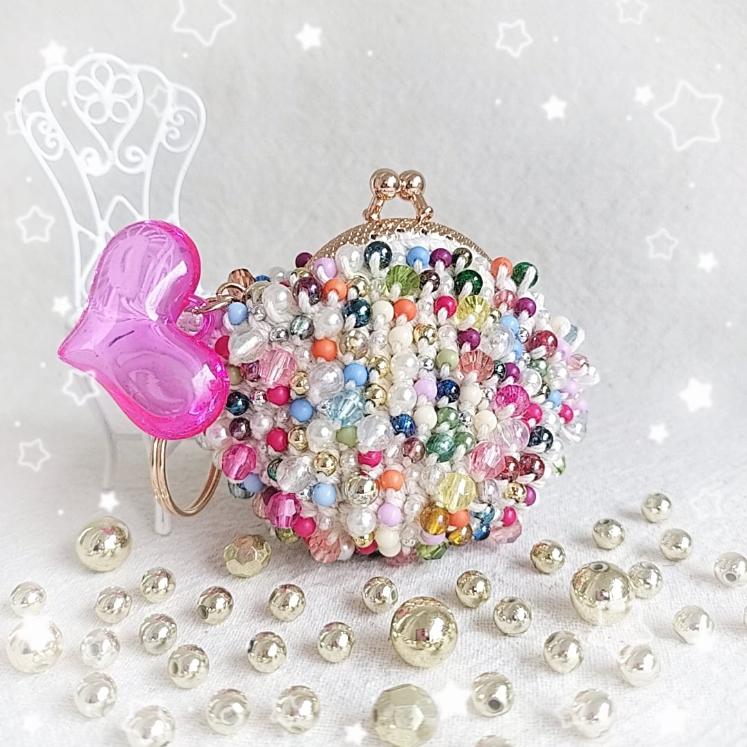 手染めビーズを編んだがま口-キラキラ2ミニキーホルダー、口金5センチ
