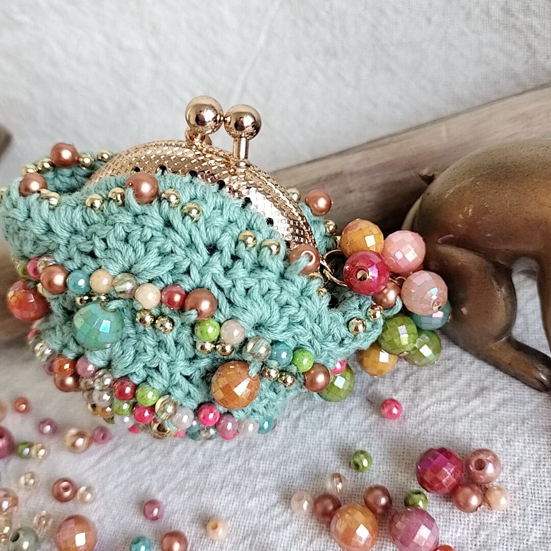 キラキラ手染めビーズを編んだがま口.ミニ口金5センチ