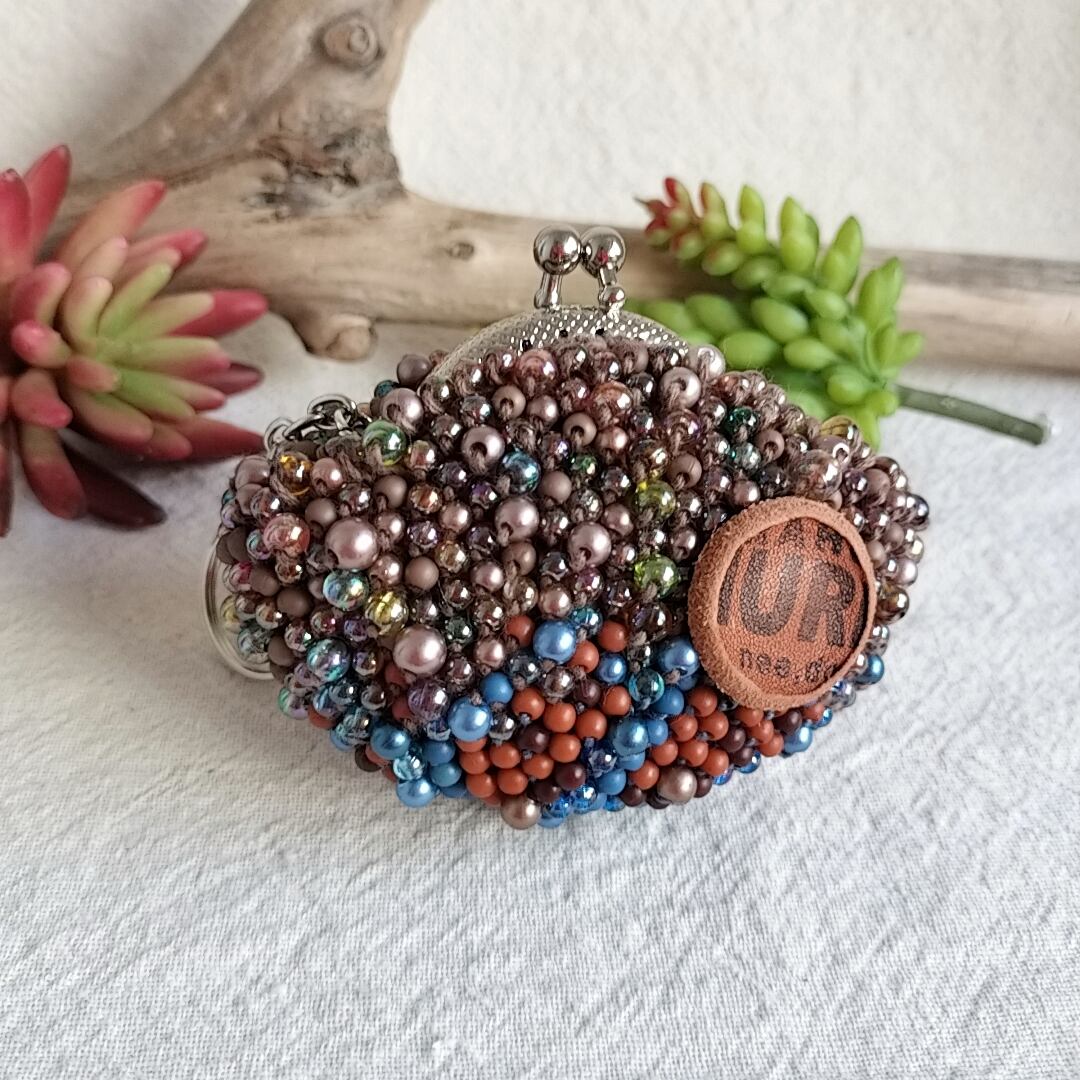 手染めのカラフルビーズを編み込んだ可愛いサイズのがま口です。