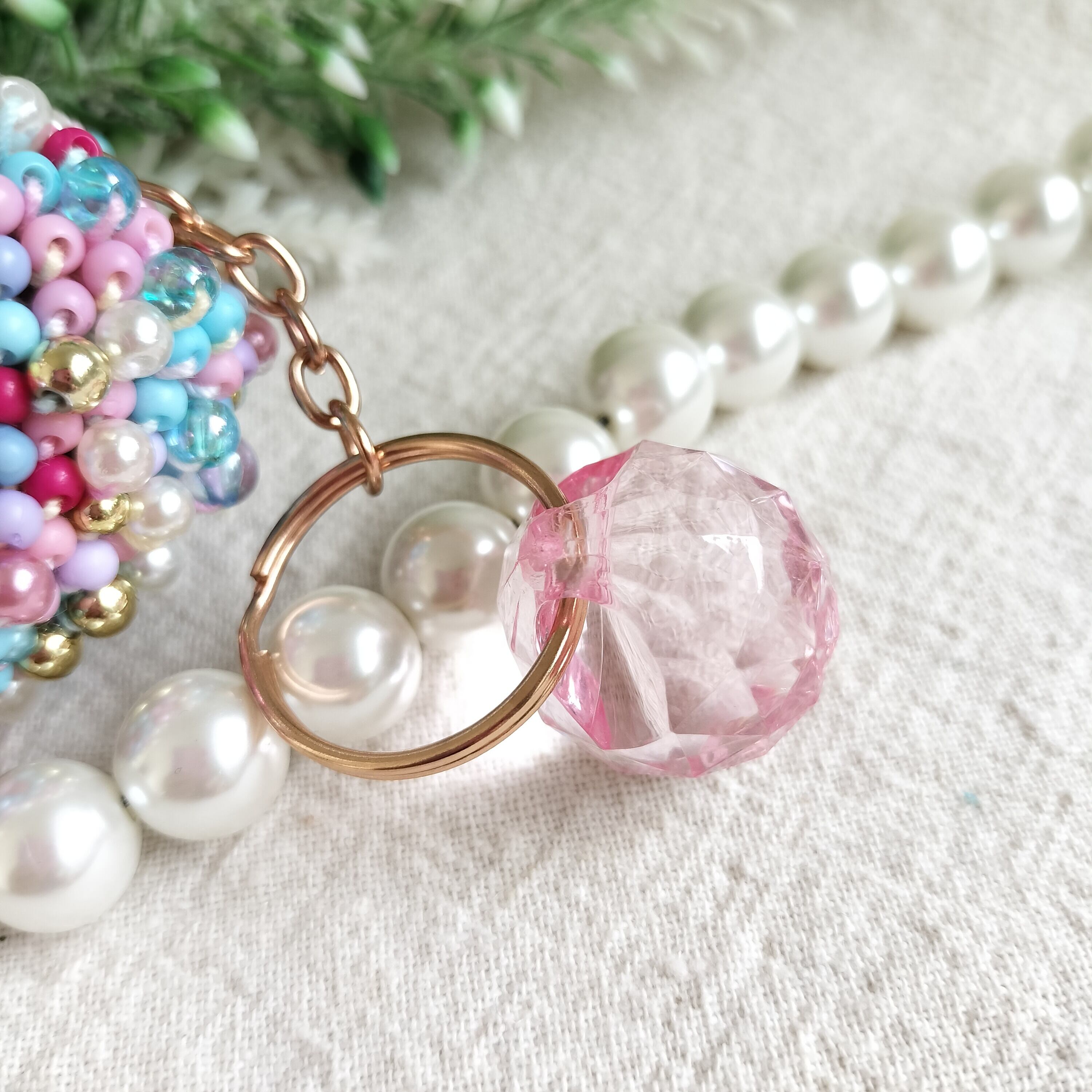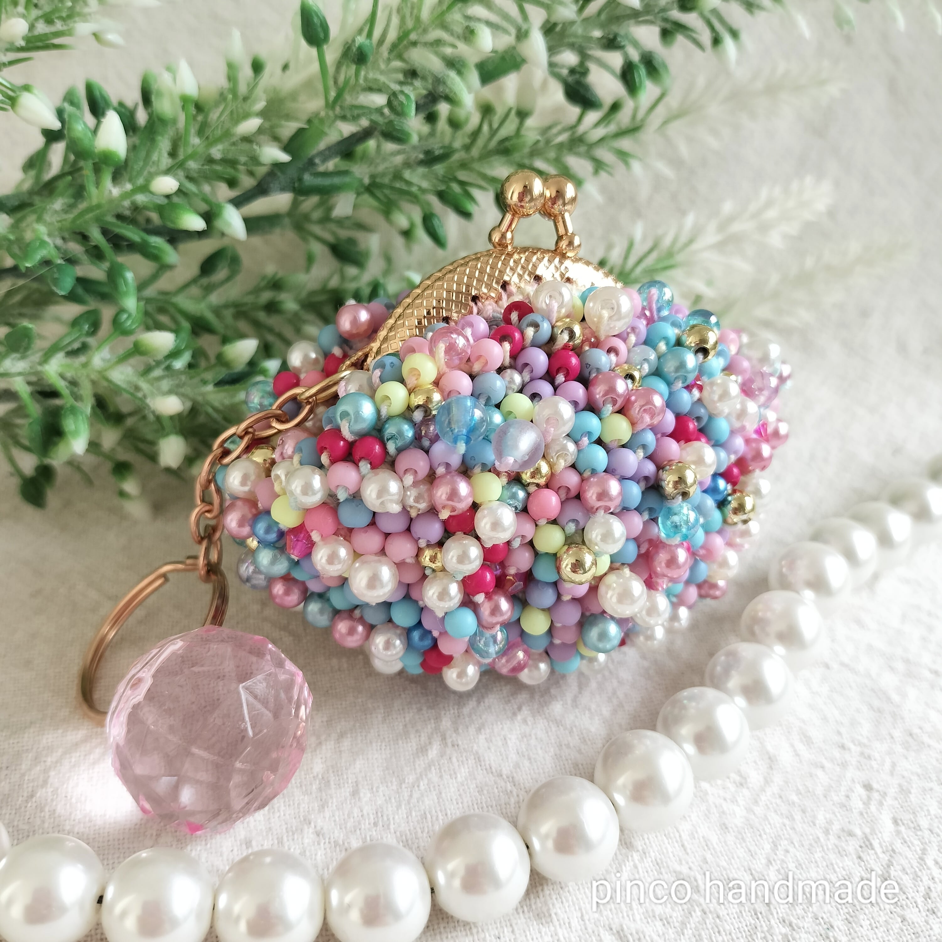 手染めビーズを編んだがま口.乙女の泡玉、小さな口金5センチ